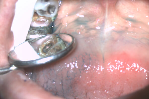①自覚症状なし・歯肉にサイナストラクト(排膿路)あり
